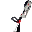 Щели воздухозабора для охлаждения двигателя (по бокам, между красной ручкой и корпусом) сделаны настолько узкими, что к ним притягивается скошенная трава, а что-то вроде поролона, используемое в качестве фильтра, уложено в эти щели кое-как. В результате - куча мусора внутри уже после первого использования. К счастью, я любопытный, и легко поправимо. Объём травосборника не 30 литров - это объём прямоугольной коробки, в которую он бы влез. А учитывая все его скосы, рёбра и выштамповки внутренний объём литров 20. Регулировка высоты ручки - это сантиметра 3. То есть, её нет. Нет куска провода с вилкой, как на картинке, и нужна специальная розетка. Складная ручка - это возможность раскручивать 2 гайки, которыми она крепится к корпусу, и 2 болта, соединяющих её части. То есть, её тоже нет. Разборная и складная - это не одно и то же.