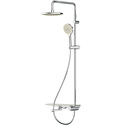 Устройство: душевая система • Смеситель: термостатический • Ручная лейка: размер 110 мм, настройки 3 шт • Верхний душ: размер 220 мм, настройки 1 шт • Комплектация: ручной душ, смеситель, стойка, шланг, крепление ручного душа