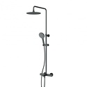 Устройство: душевая система • Смеситель: термостатический • Ручной душ (душевая лейка): размер 120 мм, настройки 3 шт • Верхний душ (тропический): размер 220 мм, настройки 1 шт • Комплектация: ручной душ, верхний душ, смеситель, стойка, шланг, крепление ручного душа