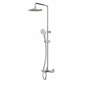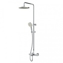 Устройство: душевая система • Смеситель: термостатический • Ручная лейка: размер 110 мм, настройки 3 шт • Верхний душ: размер 254 мм, настройки 1 шт • Комплектация: ручной душ, смеситель, стойка, шланг, крепление ручного душа