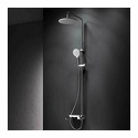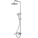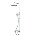 Устройство: душевая система • Смеситель: джойстик • Ручной душ (душевая лейка): размер 120 мм, настройки 3 шт • Верхний душ (тропический): размер 254 мм, настройки 1 шт • Комплектация: ручной душ, верхний душ, смеситель, стойка, шланг, крепление ручного душа