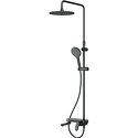 Устройство: душевая система • Смеситель: однорычажный • Ручной душ (душевая лейка): размер 120 мм, настройки 3 шт • Верхний душ (тропический): размер 254 мм, настройки 1 шт • Комплектация: ручной душ, верхний душ, смеситель, стойка, шланг, крепление ручного душа, полка