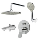 Комплектацияручной душ (душевая лейка), верхний душ (тропический), смеситель, излив, душевой шланг, крепление ручного душа, настенный кронштейн