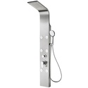 Душевая панельGalaxy компанииAquanet позволит проводить оздоровительные процедуры в домашних условиях. Эффектный внешний вид и практичность эксплуатации придает изделию из нержавеющей стали матовая хромированная поверхность. Функциональность обеспечивают тропический и верхний каскадный душ, ручная лейка, работающая в трех режимах, и шесть форсунок для массажа спины. Пластиковый гибкий шланг не перекручивается, что помогает избежать заломов и быстрого износа.