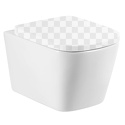 подвесной унитаз • фаянс • выпуск горизонтальный • подвод воды сбоку/сзади • плавное опускание крышки • система антивсплеск • размеры 365x365x495 мм