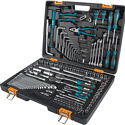 КомплектацияБиты 25 мм (26 шт) Головки 1/4" (9 шт) Головки 1/2" Е-профиль (5 шт) Рукоятка с трещеткой квадрат 1/4 (1 шт) Рукоятка для головок (1 шт) Удлинитель 1/4":50 мм (1 шт) Удлинитель 1/4":100 мм (1 шт) Удлинитель 1/4":150мм (1 шт) Гибкий удлинитель (1 шт) Шарнир карданный 1/4 (1 шт) Головки 3/8" (15 шт) Рукоятка с трещеткой квадрат 3/8 (1 шт) Удлинитель 3/8 75 мм (1 шт) Удлинитель 3/8 250 мм (1 шт) Шарнир карданный 3/8” (1 шт) Головки 1/2" (19 шт) Головки 1/2" Е-профиль (5 шт) Головка торцевая свечная, 1/2" (2 шт) Шарнирный кардан 1/2" (1 шт) Вороток Г-образный 1/2" 250 мм (1 шт) Вороток шарнирный 1/2 430 мм (1 шт) Удлинитель 1/2":75 мм (1 шт) Удлинитель 1/2":150 мм (1 шт) Рукоятка с трещеткой квадрат 1/2 (1 шт) Переходник 3/8"–1/2" (1 шт) Переходник 3/8"–1/4" (1 шт) Держатель для бит (1 шт) Ключ имбусовый (10 шт) Ключ накидной (5 шт) Ключ комбинированный (17 шт) Отвертка (6 шт) Пассатижи (1 шт) Ключ трубный (1 шт) Молоток (1 шт)