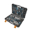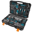 КомплектацияПлоскогубцы 160мм (1 шт) Бокорезы (1 шт) Длинногубцы 160мм (1 шт) Ключ разводной 250мм (1 шт) Пинцы 7 (1 шт) Ключ комбинированный (12 шт) Ключ имбусовый (18 шт) Головки 1/2" (13 шт) Головки 1/4" (12 шт) Головка торцевая свечная, 1/2" (2 шт) Вороток Т-образный 1/4" (1 шт) Шарнир карданный 1/2 (1 шт) Шарнир карданный 1/4 (1 шт) Удлинитель 1/2":125 мм (1 шт) Удлинитель 1/4":75мм (1 шт) Рукоятка с трещеткой квадрат 1/2 (1 шт) Рукоятка с трещеткой квадрат 1/4 (1 шт) Биты 1/4 (65 шт) Адаптер для бит (1 шт) Молоток (1 шт) Нож (1 шт) Держатель для отверток (1 шт) Жало для отверток (4 шт) Рулетка измерительная 3м (1 шт) Отвертка (5 шт) Отвертка для бит (1 шт) Тестер (1 шт)