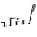 Назначение: ванна+душ • Конструкция: двухрычажный • Монтаж: горизонтальный • Материал: покрытие - хром • Монтажные отверстия: 5 отверстий • Форма излива: каскадная • Душевая лейка в комплекте: есть • Донный клапан в комплекте: есть