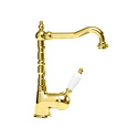 Назначение: для умывальника • Конструкция: однорычажный • Монтаж: горизонтальный • Клапан: керамический • Материал: покрытие - золото • Подводка: гибкая • Монтажные отверстия: 1 отверстие • Форма излива: традиционная • Душевая лейка в комплекте: нет • Аэратор: есть • Донный клапан в комплекте: есть