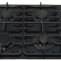 Независимая встраиваемая газовая панель на стекле, с классическим расположением горелок, с розжигом, газ-контролем, с фиксированным положением ручек, с чугунной решеткой. Поворотные ручки расположены сбоку.