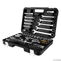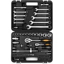 Набор: 82 шт • Ключи: комбинированные • Головки: 6-ти гранные головки, свечные • Ключей-трещоток: 2 шт • Хранение: пластиковый кейс