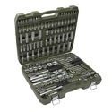Головки торцевые подробно1/4": 4, 4.5, 5, 5.5, 6, 7, 8, 9, 10, 11, 12, 13, 14 мм; Torx 1/4": E4, E5, E6, E7, E8; с битами 1/4": SL4, SL5.5, SL6, SL6.5, SL7, PH0, РН1, РН2, PZ0, PZ1, PZ2, H3, H4, H5, H6, T8, T9, T10, T15, T20, T25, T27, T30, TH8, TH9, TH10, TH15, TH20, TH25, TH27,TH30; вороток т-образный 1/4": 110 мм; трещотка 1/4": 72 зуба; удлинитель 1/4": 50, 100 мм; карданный шарнир 1/4"; 3/8": 10, 11, 12, 13, 14, 15, 16, 17, 18, 19 мм; длинные 3/8": 10, 11, 12, 13, 14, 15 мм; Torx 3/8": E10, E11, E12, E14, E16, E18; свечная 3/8": 18 мм; трещотка 3/8": 72 зуба; удлинитель 3/8": 150 мм; карданный шарнир 3/8"; 1/2": 10, 11, 12, 13, 14, 15, 16, 17, 18, 19, 20, 21, 22, 24, 27, 30, 32 мм; длинные 1/2": 16, 17, 18, 19, 22 мм; Torx 1/2": E20, E24; свечные 1/2": 16, 21 мм; трещотка 1/2": 72 зуба; удлинитель 1/2": 125, 250 мм; карданный шарнир 1/2"