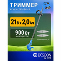 Производитель: Desoon Модель: DSTR21 - аккумуляторный - 900 Вт - оснастка: леска+металлический нож+металлический диск+пластиковый нож Описание