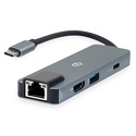 подключение по двойной USB-C • 1 x USB-A • 1 x USB-C • видео до 4K 30 Гц • питание USB-C PD до 87 Вт • LAN-адаптер 100 Мбит/с • кардридер • корпус металл