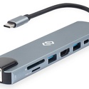 подключение по USB-C • 2 x USB-A • 2 x USB-C • видео до 4K 30 Гц • питание USB-C PD до 87 Вт • LAN-адаптер 100 Мбит/с • кардридер • корпус металл