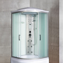 Закрытая кабина, полностенная, двери раздвижные, материал поддона: акрил, материал стенок: стекло, тропический душ, вертикальный гидромассаж, габариты (ШхВхД): 90x210x90 см