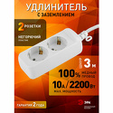 Розеток: евро без заземления 2 шт • Мощность подключения: 1300 Вт, 6 А • Длина кабеля: 3 м