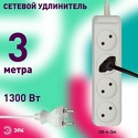 Розеток: евро без заземления 3 шт • Мощность подключения: 1300 Вт, 6 А • Длина кабеля: 3 м