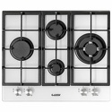 Поверхность: варочная панель • Тип поверхности: газовая • Рабочая поверхность: закаленное стекло • Число конфорок: 4 • Установка: независимая • Газовые конфорки: всего - 4 (1 конфорка "Тройная корона") • Газ-контроль конфорок: есть • Тип управления: механическое • Переключатели: поворотные • Электроподжиг: есть, автоматический • Размеры: 600 мм • Цвет: панель - белый