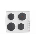 Индукционные конфорки - Нет, Дизайн ДОМИНО - Нет, Функция автоматического закипания - Нет, Тип варочной панели - Электрическая, Ближняя правая конфорка - 1000, Установка - Независимая, Глубина встраивания - 48.6, Количество конфорок быстрого разогрева - 1, Тип управления - Механическое, Материал рабочей панели - Эмаль, Дисплей - Нет, Количество электрических конфорок - 4, Ширина встраивания - 56.2, Высота - 8, Расположение панели управления - Сбоку, Максимальная потребляемая мощность - 5500, Ширина - 59, Цвет - Белый, Ближняя левая конфорка - 1500, Всего конфорок - 4, Блокировка панели управления - Нет, Дальняя левая конфорка - 1000, Дальняя правая конфорка - 2000, Количество чугунных конфорок - 4, Вес - 12, Глубина - 52