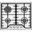 Поверхность: варочная панель • Тип поверхности: газовая • Рабочая поверхность: нерж.сталь • Число конфорок: 4 • Установка: независимая • Газовые конфорки: всего - 4 (1 конфорка "Тройная корона") • Газ-контроль конфорок: есть • Тип управления: механическое • Переключатели: поворотные • Электроподжиг: есть, автоматический • Размеры: 590x510x45 мм • Размер ниши для встраивания: 550x470 мм • Цвет: панель - нерж.сталь
