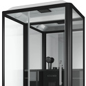 Закрытая кабина, полностенная, двери раздвижные, материал поддона: акрил, материал стенок: стекло, тропический душ, вертикальный гидромассаж, габариты (ШхВхД): 90x215x120 см
