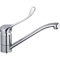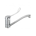 Назначение: кухонный • Конструкция: однорычажный • Монтаж: горизонтальный • Материал: латунь, покрытие - хром • Монтажные отверстия: 1 отверстие • Форма излива: традиционная • Душевая лейка в комплекте: нет • Донный клапан в комплекте: есть