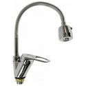 Назначение: кухонный • Конструкция: однорычажный • Монтаж: горизонтальный • Материал: латунь, покрытие - хром • Монтажные отверстия: 1 отверстие • Форма излива: традиционная • Душевая лейка в комплекте: нет • Донный клапан в комплекте: есть