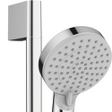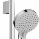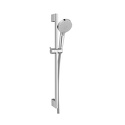 состоит из: ручного душа, душевой штанги, душевого шланга, слайдера; размер душевого диска: 100 мм; тип струи: Rain, IntenseRain; регулировка типа распыления поворотом распылительного диска; угол наклона держателя для ручного душа регулируется на 45 °; максимальный расход при 3 барах: 15,2 л / мин; диаметр душевой штанги: 22 мм; длина душевой стойки: 669 мм; профильная труба-стойка: круглая; расстояние между точек сверления 625 мм; настенные опоры из пластика.
