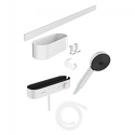 Комплектацияручной душ (душевая воронка), смеситель, стойка / штанга, душевой шланг, крепление ручного душа, полка / в виде верхней части смесителя /, мыльница