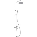 Устройство: душевая система • Смеситель: термостатический • Ручная лейка: размер 106 мм • Верхний душ: размер 194 мм, настройки 1 шт • Комплектация: ручной душ, смеситель, стойка, шланг, крепление ручного душа