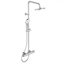 Устройство: душевая система • Смеситель: термостатический • Ручной душ (душевая лейка): размер 110 мм, настройки 3 шт • Верхний душ (тропический): размер 200 мм, настройки 1 шт • Комплектация: ручной душ, верхний душ, смеситель, стойка, шланг, крепление ручного душа