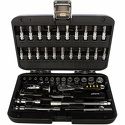 Набор: 46 шт • Ключи: шестигранные • Головки: 6-ти гранные головки • Ключей-трещоток: 1 шт • Хранение: пластиковый кейс