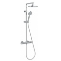 Устройство: душевая система • Смеситель: термостатический • Ручной душ (душевая лейка): размер 100 мм, настройки 1 шт • Верхний душ (тропический): размер 200 мм, настройки 1 шт • Комплектация: ручной душ, верхний душ, смеситель, стойка, шланг, крепление ручного душа
