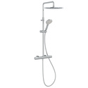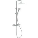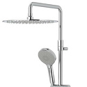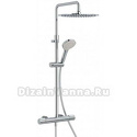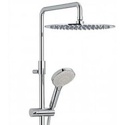 Устройство: душевая система • Смеситель: термостатический • Ручной душ (душевая лейка): размер 110 мм, настройки 3 шт • Верхний душ (тропический): размер 300 мм, настройки 1 шт • Комплектация: ручной душ, верхний душ, смеситель, стойка, шланг, крепление ручного душа