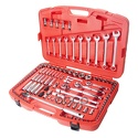 Набор: 123 шт • Ключи: комбинированные • Головки: 6-ти гранные головки, свечные • Ключей-трещоток: 3 шт • Хранение: пластиковый кейс