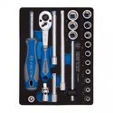 Комплектация- Головки торцевые короткие 6-гранные 2335M 4, 4.5, 5, 5.5, 6, 7, 8, 9, 10, 11, 12, 13, 14- Трещотка флажковая 2771-55G 24 зубца, 140 мм- Вороток скользящий 2571-45 115 мм- Удлинители 2221 50, 100, 150 мм- Кардан 2792 36 мм- Отвертка вороток 2178DF 150 мм- Держатель вставок (бит) 1/4" 2142 25 мм- Пластиковый (PP) футляр 0820005 200 x 170 x 52 мм- Ложемент EVA - 187 x 140 мм