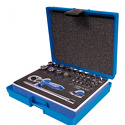 КомплектацияГоловки и принадлежности 1/4":- Головки торцевые короткие 6-гранные 2335M 4, 4.5, 5, 5.5, 6, 7, 8, 9, 10, 11, 12, 13, 14 мм- Трещотка флажковая, для головок и вставок (бит) 276A-04G 72 зубца, 108 мм- Удлинитель 2221-06 150 мм- Кардан 2792 36 мм- Держатель вставок (бит) 1/4" 2142 25 ммВставки (биты) 1/4" (6.35 мм):- Шестигранные HEX 1025H H3, H4, H5, H6- Шлицевые Slotted 1025S 4, 5- 6-лучевая звезда TORX 1025T T10, T15, T20, T30- Крестовые Phillips 1025P PH1, PH2- Пластиковый (PP) футляр 0820005 200 x 170 x 52 мм- Ложемент EVA - 187 x 140 мм