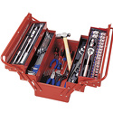 КомплектацияОтсек 1, Набор торцевых головок KING TONY 9-4319MRГоловки и принадлежности 1/2" (12,7 мм):Головки торцевые стандартные 6-гранные: 10, 11, 12, 13, 14, 15, 16, 17, 18, 19, 20, 21, 22, 23, 24, 27, 30, 32 ммТрещотка серии 4768-10F длина 250 мм, 32 зубца, флажковый механизм переключения реверса, насечка на рукояткеКардан: длина 77,5 ммОтсек 2, Набор принадлежностей для торцевых головок KING TONY 9-4116FRПринадлежности 1/2" (12,7 мм):Вороток с шарниром: длина 450 ммВороток скользящий (ползунок): длина 300 ммГоловка свечная шестигранная: 21 мм, длина 70 мм, резиновый фиксаторУдлинители: длина 125 и 250 ммУдлинители: длина 50 мм, шаровый наконечник 15 градусовОтсек 3, Набор накидных ключей KING TONY 9-1716MRКлючи накидные: 8x9, 10x11, 12x13, 14x15, 16x17, 18x19 ммОтсек 4, Набор рожковых ключей и шестигранников KING TONY 9-90115MRКлючи рожковые: 6x7, 8x10, 11x13, 12x13, 17x19, 22x24 ммНабор Г-образных шестигранников с шаровым окончанием KING TONY 20109MR шестигранники: 1.5, 2, 2.5, 3, 4, 5, 6, 8, 10 ммОтсек 5Отвертки крестовые Phillips: №1 х 80 мм, №2 х 38 мм, №3 х 150 ммОтвертки шлицевые Slotted: 5.5 х 100 мм, 6.5 х 38 мм, 8 х 175 ммПлоскогубцы комбинированные: длина 175 ммПлоскогубцы тонконосые: длина 160 ммЗахват переставной: длина 250 ммКлюч разводной Chrome: длина 200 ммМолоток круглый: вес 454 гЗубила: 17 x 150 мм, 23 x 200 ммВыколотки: 3x40 мм, 4x50 мм, 5x55 мм, 6x55 ммКернер: 4 x 120 мм