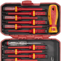 Комплектация- Диэлектрическая бита: шлиц 3.0x100- Диэлектрическая бита: шлиц 4.0x100- Диэлектрическая бита: шлиц 5.5x100- Диэлектрическая бита: шлиц 6.5x100- Диэлектрическая бита: PH 1x80- Диэлектрическая бита: PH 2x100- Диэлектрическая бита: PZ 1x80- Диэлектрическая бита: PZ 2x100- Диэлектрическая бита: Т10x100- Диэлектрическая бита: Т15x100- Диэлектрическая бита: Т20x100- Тестер напряжения 110–250 В- Диэлектрическая рукоятка для сменных бит