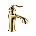 Высота излива - 76, Аэратор - Есть, Материал корпуса - Латунь, Длина излива - 114, Тип - Однозахватный, Покрытие - Золото, Количество монтажных отверстий - 1, Встраиваемый - Нет, Назначение - Для умывальника, Максимальный расход воды - 22, Форма излива - Традиционная, Донный клапан - Есть, Тип подводки - Гибкая, Поворотный излив - Нет, Термостат - Нет, Присоединительный размер - 1\2", Цвет - Золотистый, Высота - 18.6