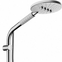 Устройство: душевой набор • Ручная лейка: размер 117 мм, настройки 2 шт • Комплектация: лейка, стойка, шланг, крепление лейки, полка