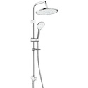 Устройство: душевая система • Ручная лейка: размер 100 мм, настройки 3 шт • Верхний душ: размер 250 мм, настройки 1 шт • Комплектация: лейка, стойка, шланг, крепление лейки, мыльница