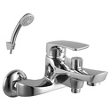 Назначение: ванна+душ • Конструкция: однорычажный • Монтаж: вертикальный • Клапан: керамический • Материал: покрытие - хром • Подводка: жесткая • Монтажные отверстия: 2 отверстия • Форма излива: традиционная • Душевая лейка в комплекте: есть • Держатель для душевой лейки: на смесителе • Аэратор: есть • Эксцентрики в комплекте: есть • Донный клапан в комплекте: есть