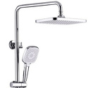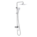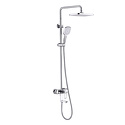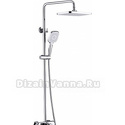 Устройство: душевая система • Смеситель: джойстик • Ручной душ (душевая лейка): размер 110 мм, настройки 3 шт • Верхний душ (тропический): размер 300 мм, настройки 1 шт • Комплектация: ручной душ, верхний душ, смеситель, стойка, шланг, крепление ручного душа