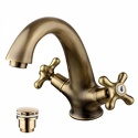 Назначение: для умывальника • Конструкция: двухрычажный • Монтаж: горизонтальный • Клапан: керамический • Материал: покрытие - бронза • Подводка: гибкая • Монтажные отверстия: 1 отверстие • Форма излива: традиционная • Душевая лейка в комплекте: нет • Аэратор: есть • Донный клапан в комплекте: есть