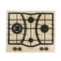 Поверхность: варочная панель • Тип поверхности: газовая • Рабочая поверхность: эмаль • Число конфорок: 4 • Установка: независимая • Газовые конфорки: всего - 4 (1 конфорка "Тройная корона") • Газ-контроль конфорок: есть • Тип управления: механическое • Переключатели: поворотные • Электроподжиг: есть • Размеры: 600x510 мм • Размер ниши для встраивания: 560x480 мм • Цвет: панель - слоновая кость