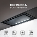 конструкция скрытая • монтаж для встраивания • ширина 52 см • управление сенсорное • производительность мотора 1050 м³/ч • цвет черный