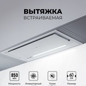 конструкция скрытая • монтаж для встраивания • ширина 52 см • управление сенсорное/дистанционное • производительность вытяжки 650 м³/ч • производительность мотора 850 м³/ч • цвет белый