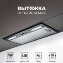 конструкция скрытая • монтаж для встраивания • ширина 52 см • управление механическое/кнопочное • производительность мотора 500 м³/ч • цвет черный